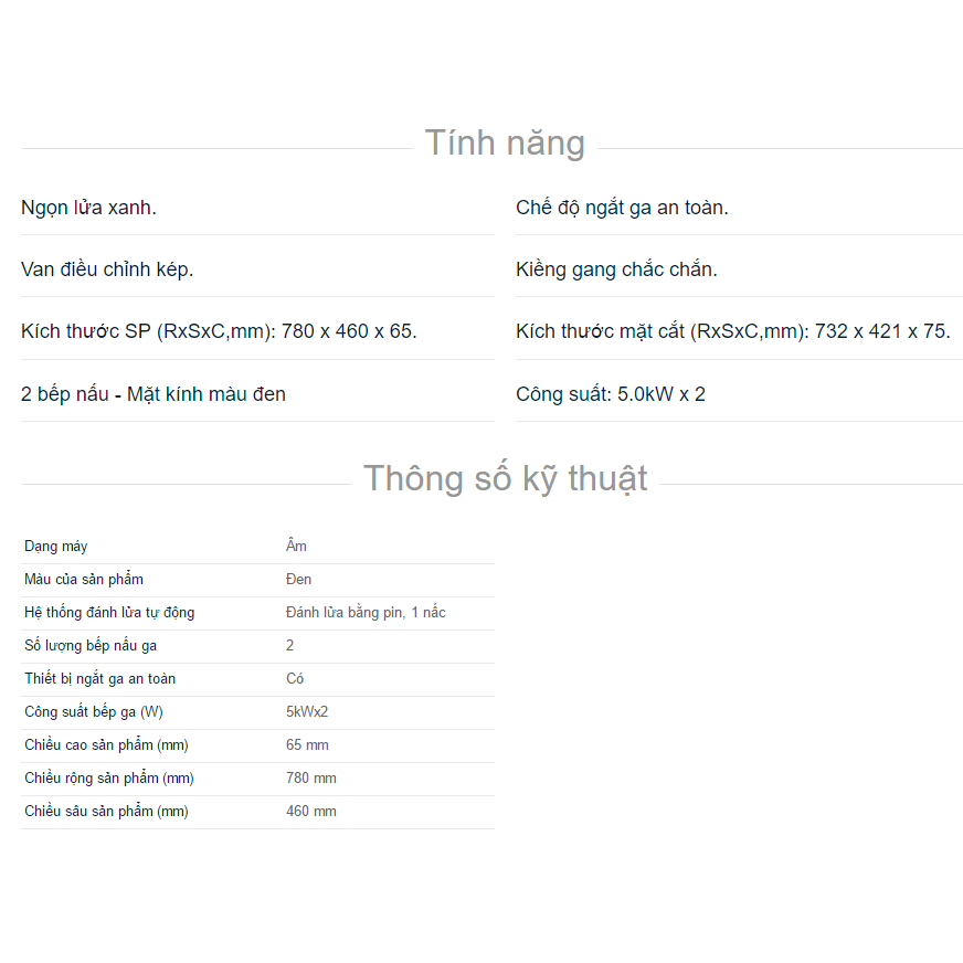 Bếp gas âm Electrolux 2 bếp, sản xuất tại Malaysia.