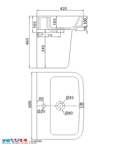 - Sản phẩm chưa bao gồm vòi và bộ xả