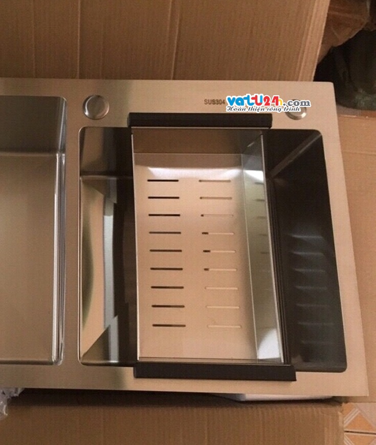 - Chậu tích hợp thêm 1 vắt dao, 1 hộc rác và 1 khay nhỏ tiện lợi