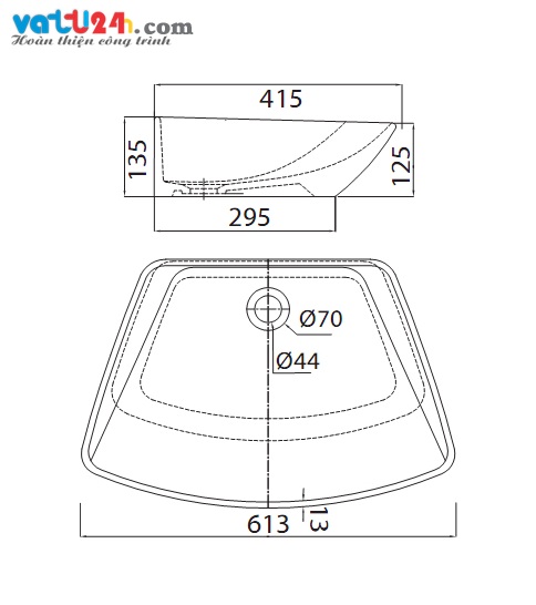 - Sản phẩm chưa bao gồm vòi và bộ xả