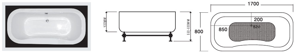 Kích thước bồn tắm : 170 x 80 x 45 cm