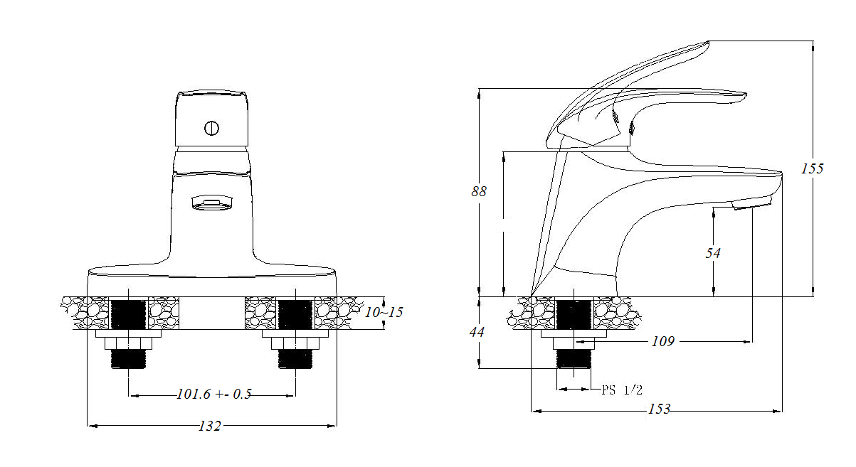 KT : 127 x 109mm ( Chiều cao x chiều ngang ) - Chiều cao miệng vòi : 54mm